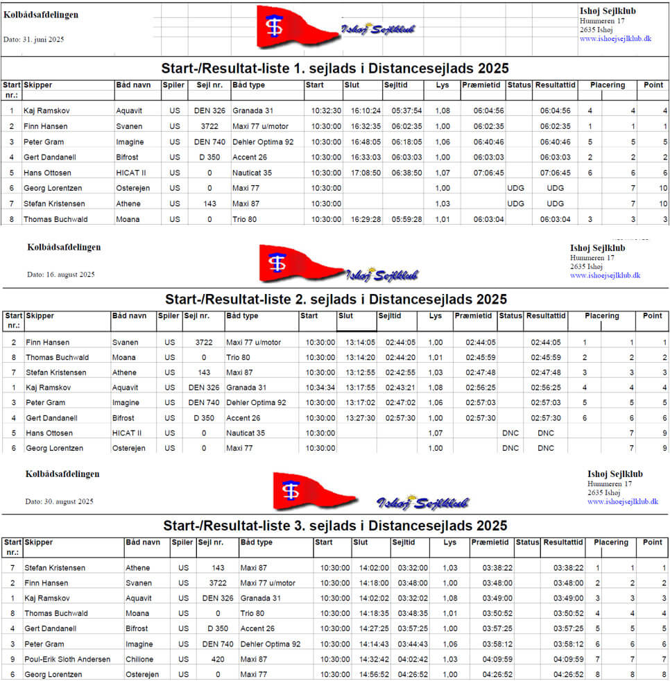 Årets distancesejladser 2025 blev afsluttet med sidste sejlads den 30. august.